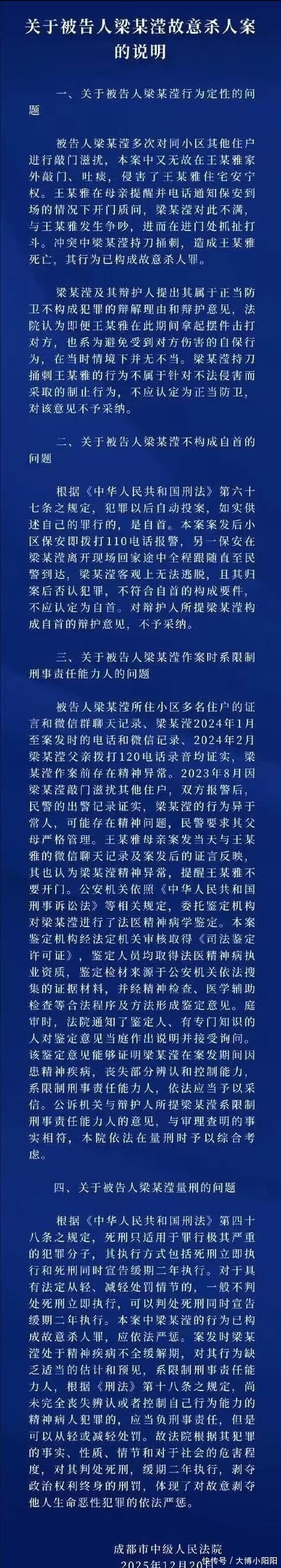最后,就是关于被告梁某滢是否在案发时患有精神疾病,法院予以了采信。